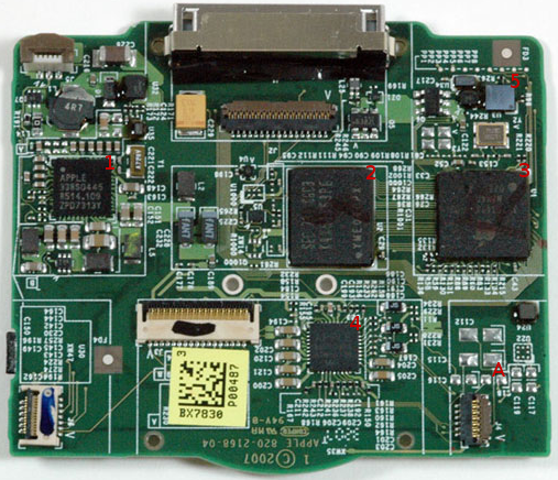 | 3 | CPU | Samsung S5L8702 | ARM926EJ-S processor. The package itself is Apple-branded and marked 337S3473 8702. Same as on the iPod nano (3rd generation) | |