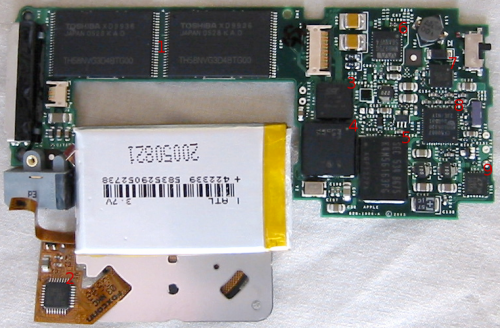 | 4 | CPU | Portal Player PP5021C-TDF | PP5021C-TDF, L9A0633, U0530 Logo, WYH30113.1, TAIWAN | This is the last Nano that used a PortalPlayer processor before Apple started using Samsung. If anybody knows of a datasheet for this, please add a link to it. |